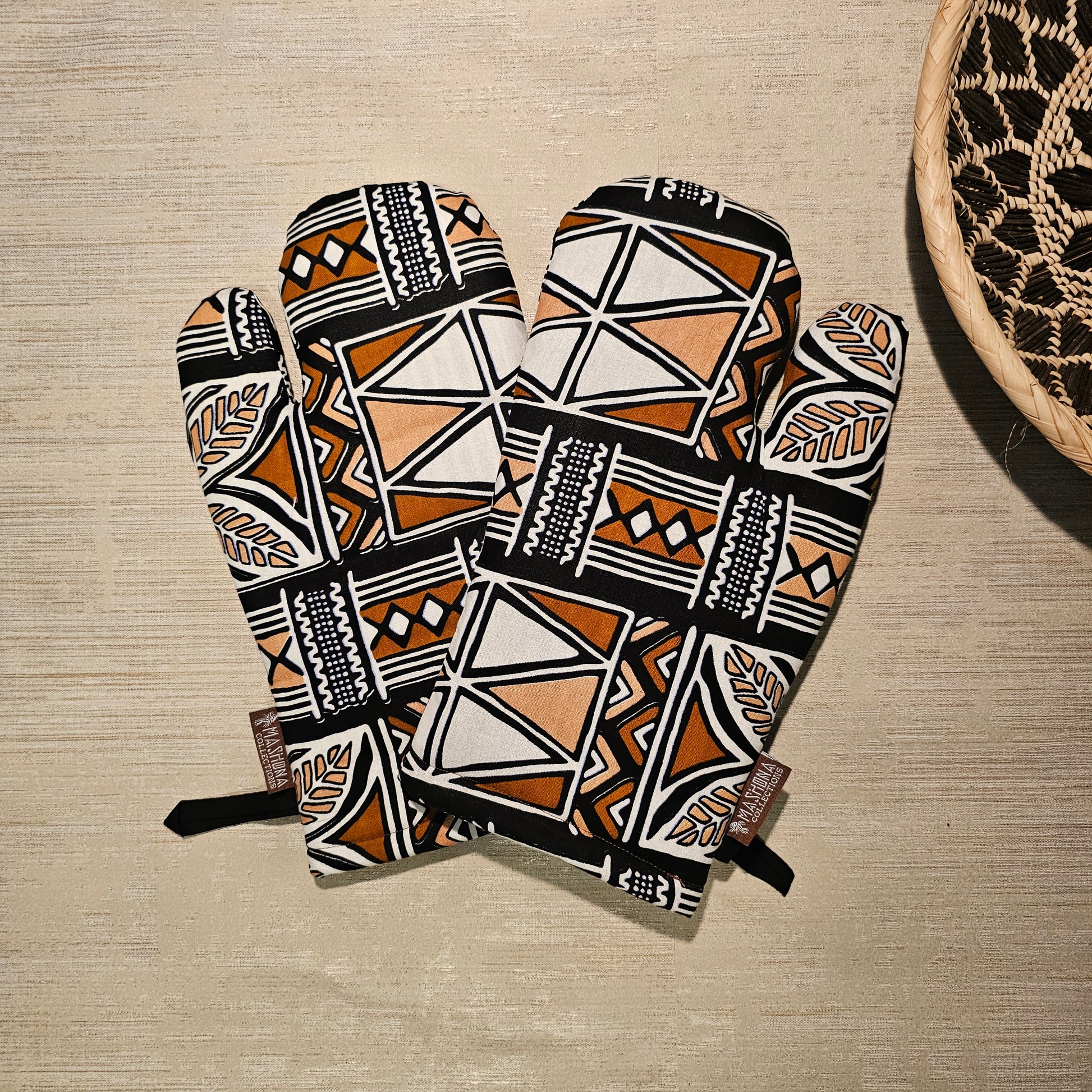 Set of 2 Oven Gloves Handmade "Mudcloth" Bogolan Print Inspired African Print
