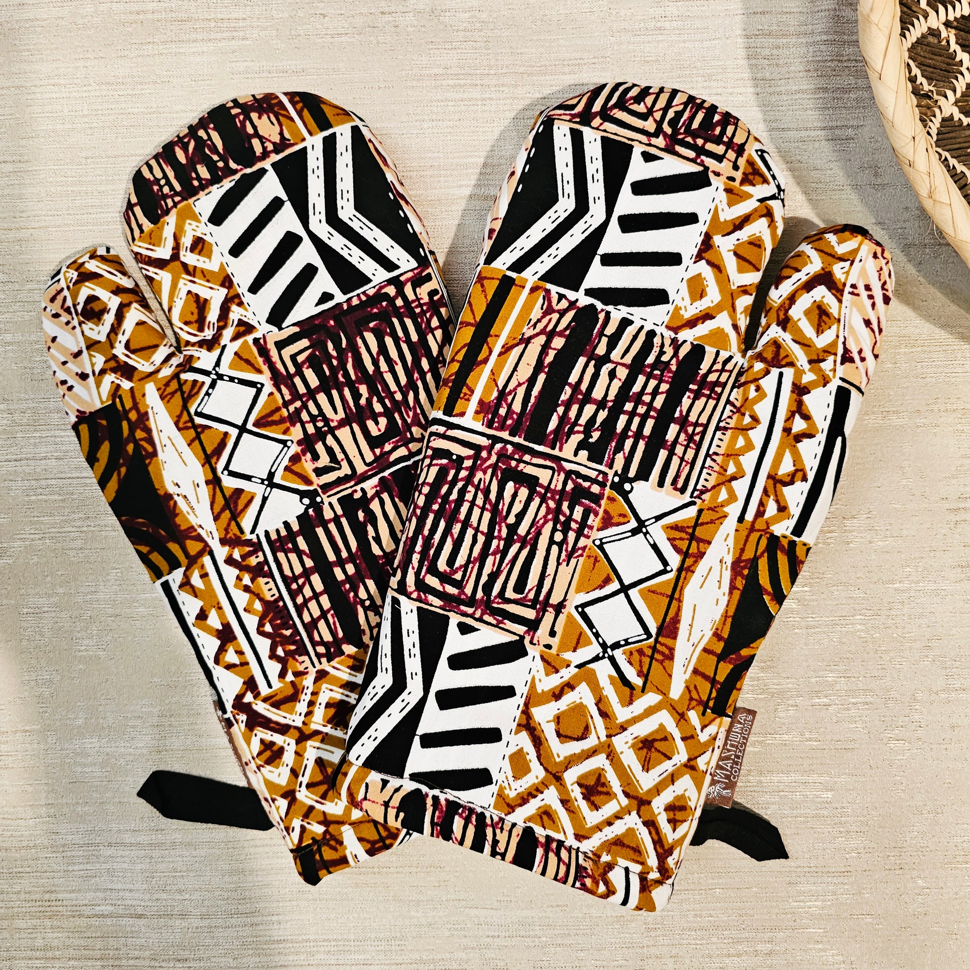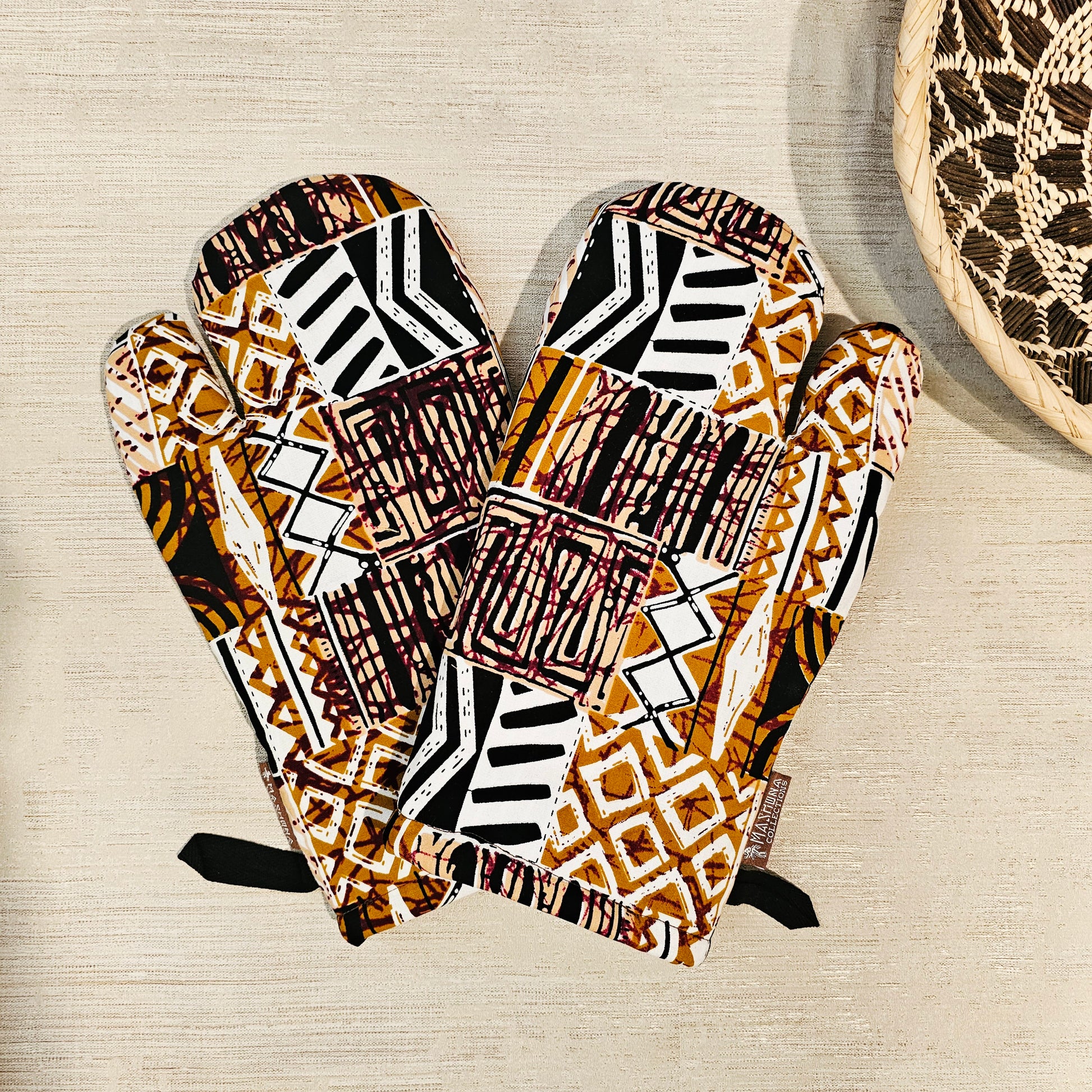Set of 2 Oven Gloves | Handmade "Mudcloth" Bogolan Print Inspired African Print