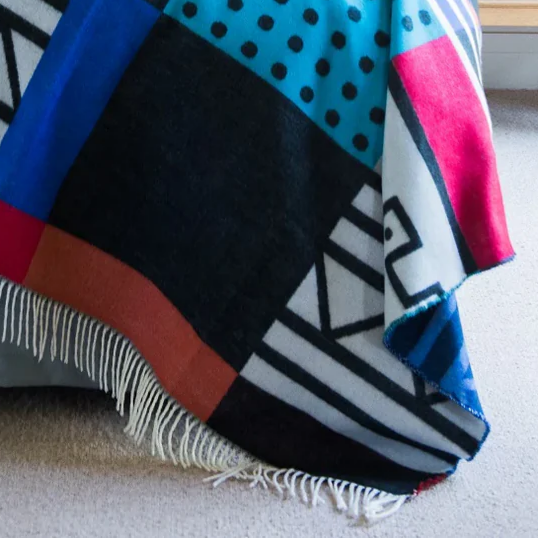 Inspired by traditional African textiles, this throw features a bold black and red design symbolizing strength and heritage. Its striking contrast and intricate patterns make it a standout piece for any living space.